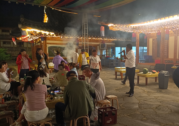 古村落無處不體現(xiàn)朝鮮民族的風(fēng)情,傍晚時(shí)分的古村落格外的迷人,等待大家的是地道的民餐。小棉襖人載歌載舞、共度美好團(tuán)建時(shí)光。