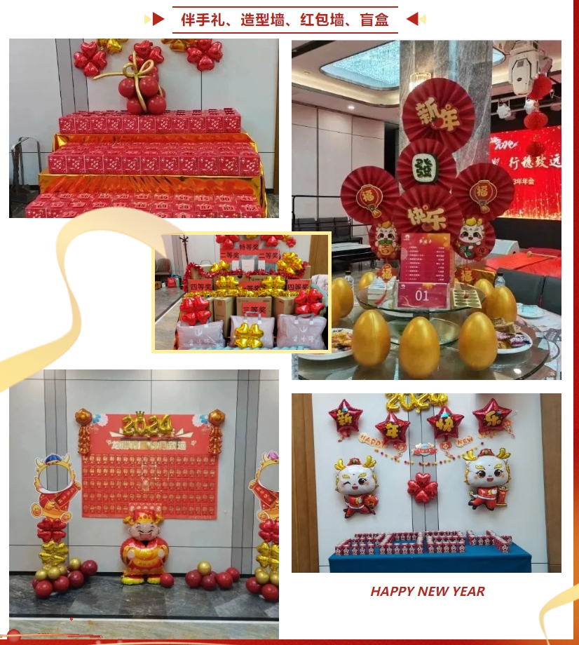 會場布置更是面面俱到:簽到處簽到并領(lǐng)取伴手禮;龍年大吉定點造型處隨意擺拍,留下美好的瞬間;紅包墻備有現(xiàn)金及刮刮樂,增加小驚喜;印有每名員工姓名的訂制版旺仔牛奶,貼心而又用心;新年盲盒區(qū)每個禮物盲盒都藏有不同的驚喜;還有豐厚的大獎,會序分工明確,每一環(huán)節(jié)都有禮儀小姐引導,全都安排的明明白白的。